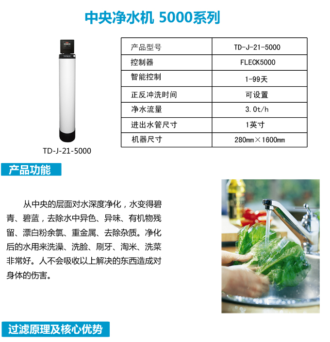 全屋凈水中央凈水機(jī)有效去除水中的異色、異味;進(jìn)一步濾除水中微小雜質(zhì)、膠狀體;去除水中的漂白粉余氯、農(nóng)藥、重金屬;保留對(duì)人體有益的礦物質(zhì)。使水變得碧清、碧藍(lán),去除對(duì)人體有害的物質(zhì)。