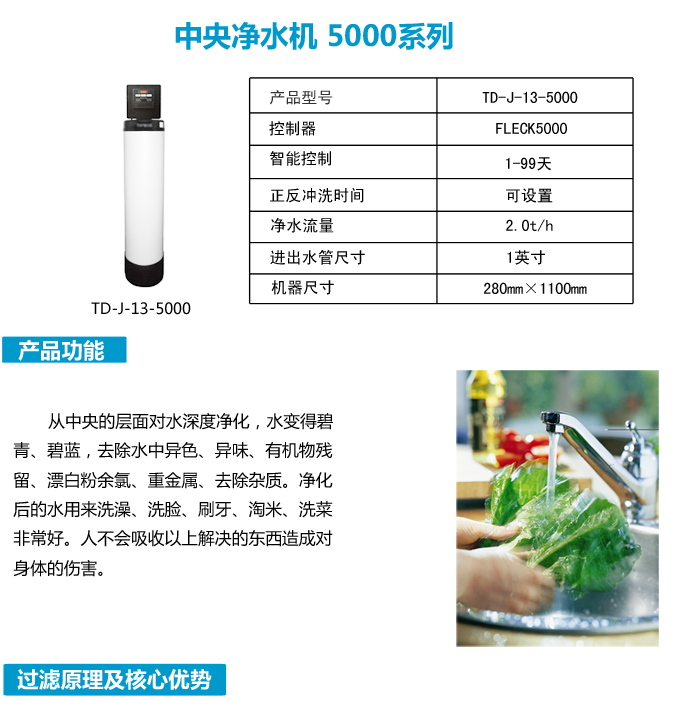 全屋中央凈水機有效去除水中的異色、異味;進一步濾除水中微小雜質(zhì)、膠狀體;去除水中的漂白粉余氯、農(nóng)藥、重金屬;保留對人體有益的礦物質(zhì)。使水變得碧清、碧藍(lán),去除對人體有害的物質(zhì)。