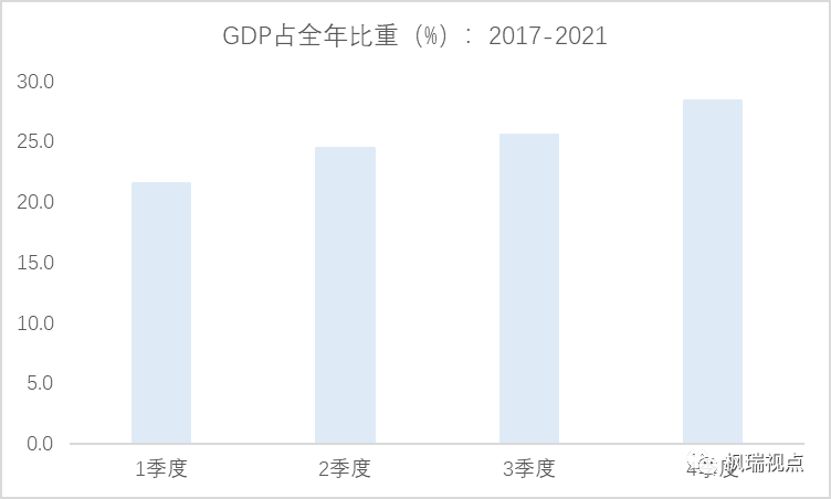 2季度在全年經(jīng)濟的比重還是相對較大的。在四個季度中,1季度占比是最低的,2季度占比其次,3、4季度占比較大。