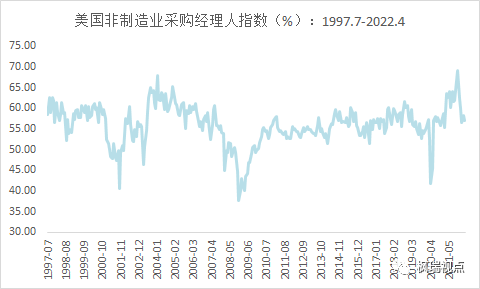 圖二:美國非制造業(yè)采購經(jīng)理人指數(shù)