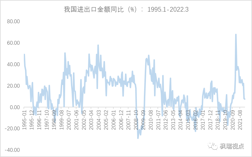 作為制造業(yè)大國,出口增速回落直接影響工業(yè)增加值。從1995年1月以來,工業(yè)增加值和進(jìn)出口總額的月度同比增速相關(guān)系數(shù)為0.62,反應(yīng)二者高度相關(guān)。
