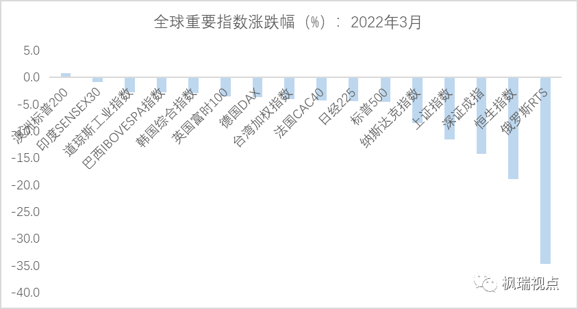 3月份其他主要新興市場國家指數(shù)表現(xiàn)都好于香港和A股。