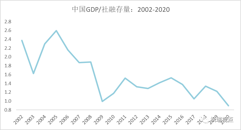 圖二:中國GDP/社會融資存量