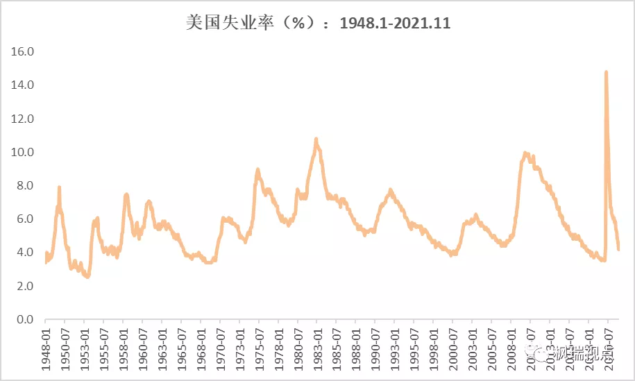 美國緊縮周期是否會因就業(yè)數(shù)據(jù)不及而延后呢?我們認為這種可能性也比較低。11月非農(nóng)就業(yè)數(shù)據(jù)雖然不及預期,但美國失業(yè)率已從10月份的4.6%下降到4.2%,恢復到了疫情前2020年2月的水平。從美國歷史上看,4.2%的失業(yè)率處在歷史較低水平(圖二)。作為對比,2020年2月,即美國新冠疫情發(fā)生之前的失業(yè)率為4.5%。