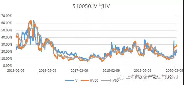 海獅投資作為專業(yè)的期權(quán)管理人,我們更加關(guān)注的是波動率。2月3日開盤,兩大股指期貨跌停,IH也逼近跌停,50ETF隱含波動率(IV)一度上漲到35%,300ETF隱含波動率上漲至40%以上。但是隱含波動率迅速跌回到15-16%水平,現(xiàn)在19%和21%水平左右。交易期權(quán)波動率的朋友一定都清楚,期權(quán)隱含波動率最重要的一點是它具有前瞻性。是期權(quán)市場對期權(quán)在一定周期內(nèi)潛在波動率的預(yù)測。從數(shù)據(jù)看,截止3月3日,50ETF 30日和60日的歷史波動率(HV)分別為31%和23%, 300ETF 30日和60日歷史波動率分別為35%和25%左右,而50ETF和300ETF隱含波動率維持在19%和21%左右,這樣意味著隱含波動率大幅低于歷史波動率。即便上周五A股暴跌,50ETF和300ETF隱含波動率也只是在21%和24%左右短暫停留了一天,這樣的現(xiàn)象是比較不常見的,IV和HV之間的差異會在未來一段時間內(nèi)逐步收斂。那問題是到底是IV向HV靠攏還是HV往IV收斂呢?雖然都是收斂,但是前者收斂方式和后者收斂的方式對期權(quán)波動率策略布局有著重大的差異。假設(shè)接下來市場實際波動加大帶動IV快速上升,目前布局雙買策略是比較優(yōu)的。相反如果接下來市場實際波動率減弱,HV下降靠攏IV,布局雙賣策略這是更好的選擇。從目前市場情緒和政策面看,我們更加偏向于后者。原因在于市場對國家頻頻出臺的扶持政策,以及對疫情的防控目前充滿信心,情緒也由悲觀慢慢轉(zhuǎn)變?yōu)闃酚^。除非國外再次傳出疫情大規(guī)模擴散消息,短期再一次出現(xiàn)大幅跳空的概率不大,即便是日內(nèi)會有所波動,實際波動率RV將會逐步下降,向IV水平回歸。當(dāng)然,當(dāng)IV大幅低于HV的時候,做空波動率還是需要非常謹(jǐn)慎小心。