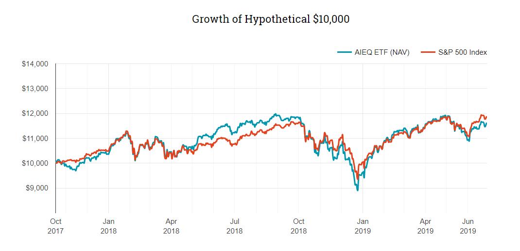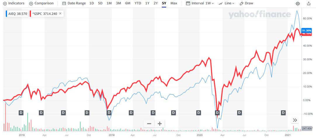 兩年前,我們撰文介紹過全球第一支AI智能基金(AIEQ),有興趣的讀者可以參閱那篇文章。借此機會,我們再來回顧一下這只基金的業(yè)績(見下圖)。結(jié)論:首支人工智能基金沒有戰(zhàn)勝標(biāo)普500指數(shù),也就沒有實現(xiàn)其投資目標(biāo)。
